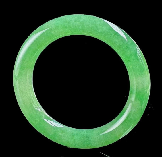 鑑定済み=日本宝石科学協会書面鑑定 氷晶円柱形エメラルドグリーンの翡翠ブレスレット《56ミリメートル》