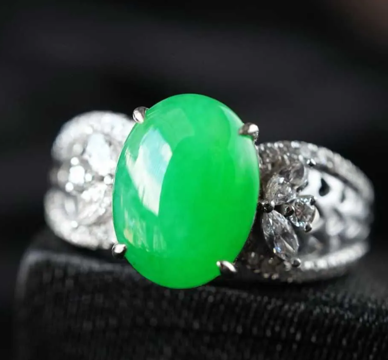 翡翠正陽グリーンエッグフェイスリング天然翡翠A級玉